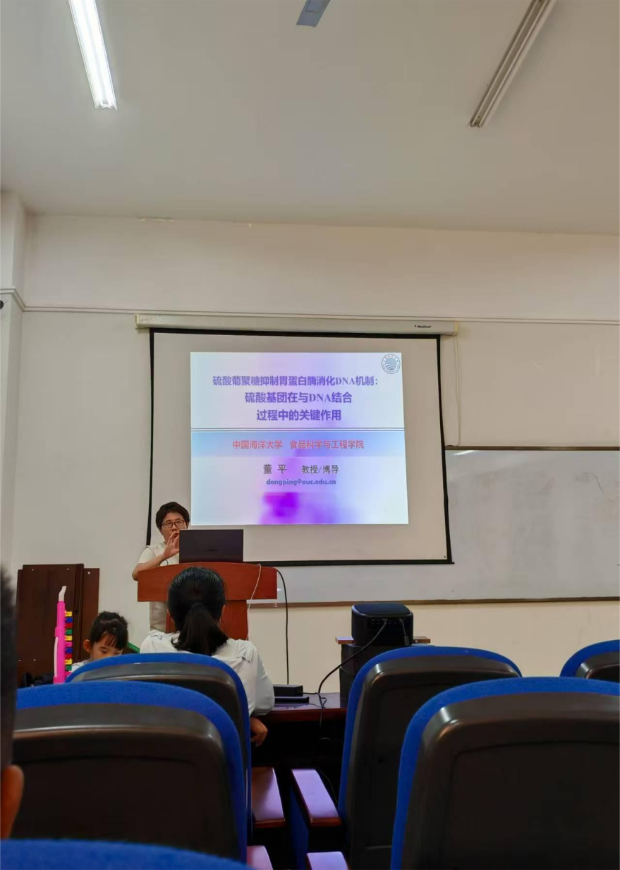 2025年8月5日,中国海洋大学董平教授受邀为中心作题为《海洋食物中抗高尿酸血症生物活性化合物的结构及分子机制研究进展》的专题学术报告。本次学术活动由姜维主任主持,中心40余名师生代表参加。